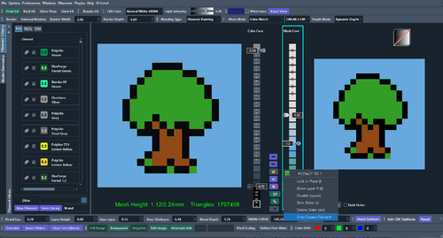 If you are having trouble picking a color, the nearest filament color can be found by hovering the cursor over a color (on the Mesh Core or on the image), right-click and use the "Find Closest Filament" item in the popup menu (as shown below).